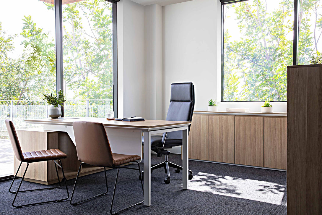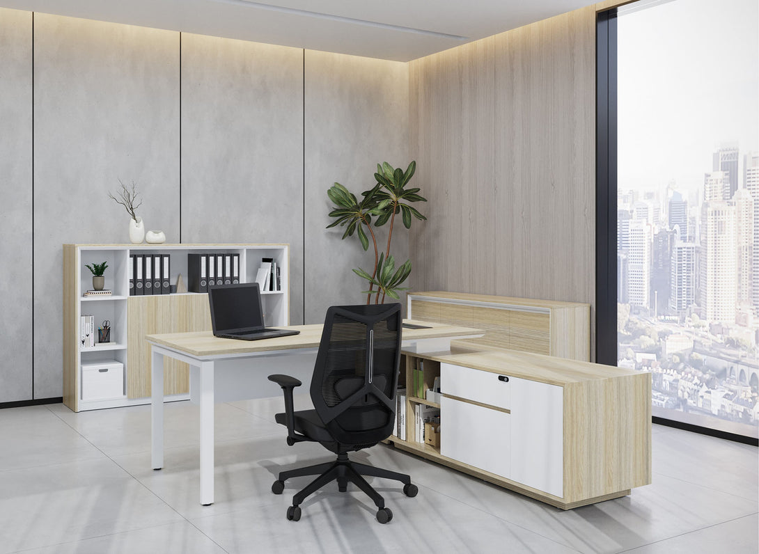 This substantial desk and side cabinet combination offers generous space and smart organisation solutions. Customize your setup with left or right hand configurations, choice of leg style and color, and integrated cable management. Lockable drawers and cupboards secure your important items, making this desk as practical as it is impressive.