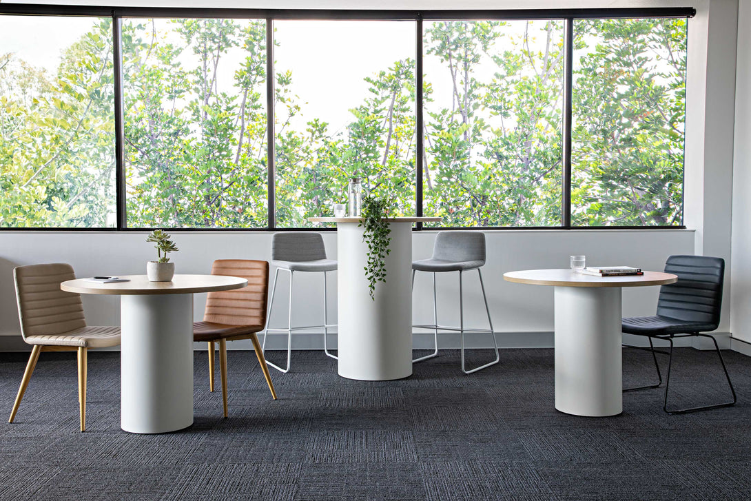 Rapidline's Drum Base Round High Bar Tables are the perfect blend of elegance and versatility. Featuring a chip resistant powdercoated base and adjustable leveling feet for stability on any surface.