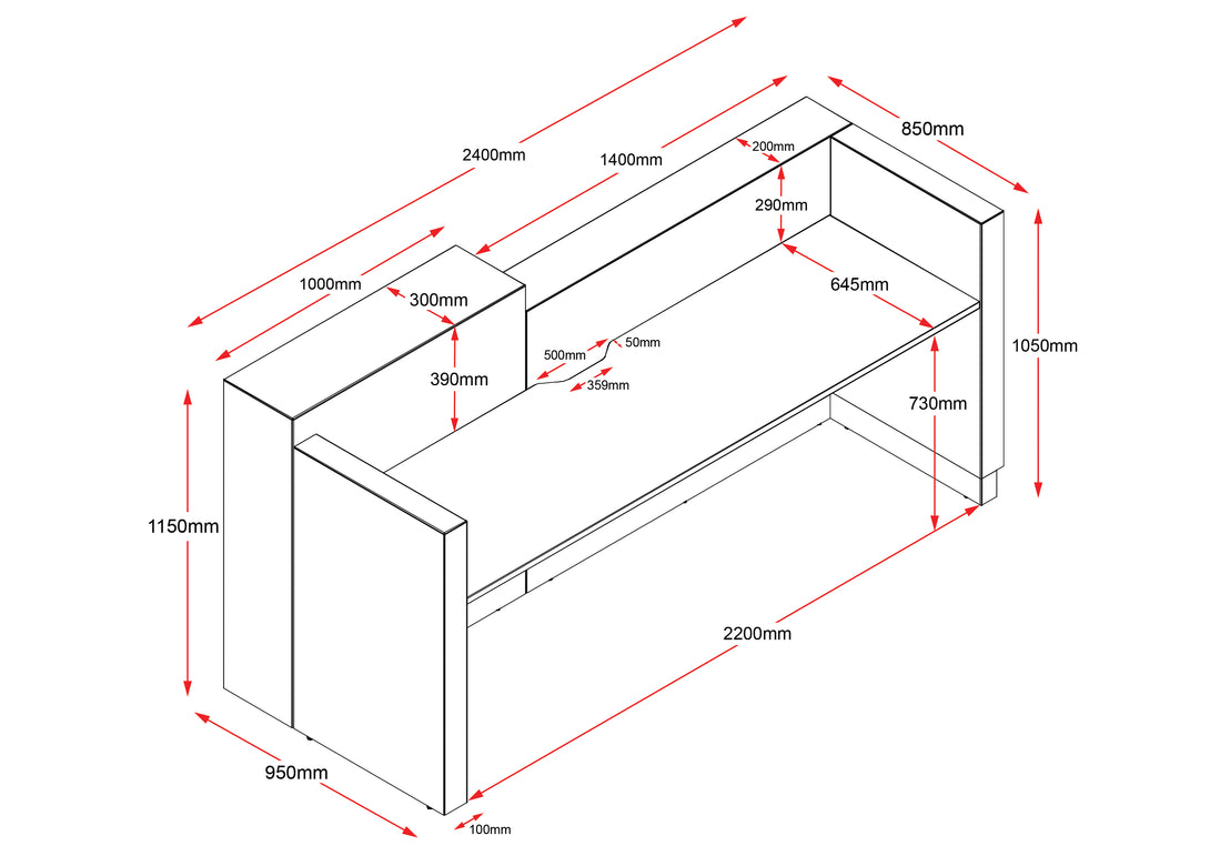 The Sempre presents itself as a sleek, contemporary reception counter, well-suited for any office setting. Its elevated counter over the workstation ensures privacy. This counter is designed with a scalloped edge, providing easy access to cables, and fortified with double support rails for added durability. The design height of the work surface accommodates a mobile pedestal underneath.