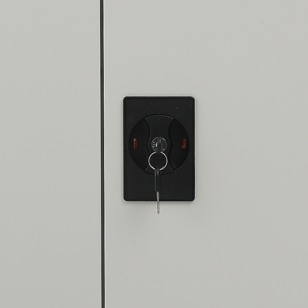 This two-door metal wardrobe made of cold-rolled steel of 0.6mm thickness, painted with special electrostatic paint for maximum resistance to moisture and corrosion.