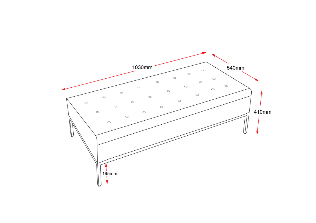 Add this ottoman to your Venus reception suite. Use as footstool or table. Button finish to black PU, easy clean upholstery. Stainless steel underframe and legs.